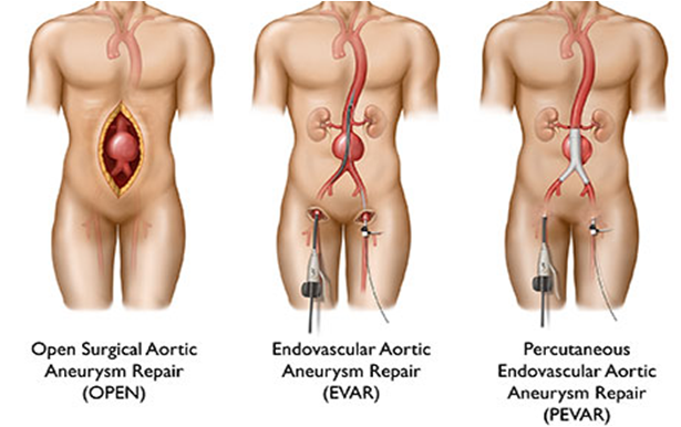 上圖:主動脈瘤傳統及微創手術之比較