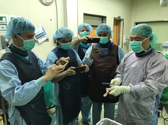 圖:李政鴻副院長於手術後向國外進修之醫師講解手術細節及教學。