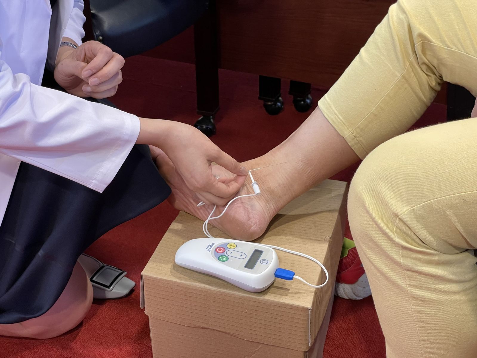 盛行率約16-18%的成人有膀胱過動症,與年齡老化、糖尿病及骨盆腔脫垂鬆弛皆可能有關。台中榮總婦女醫學部骨盆機能重建科謝筱芸醫師利用最新的「經皮脛神經電刺激」(Percutaneous Tibial Nerve Stimulation),每週只要三十分鐘,可在門診執行且無需麻醉。經皮脛神經電刺激使用針灸的細針,在三陰交穴位附近插入,接上特定電源與調整能量後,利用電能刺激後脛神經,經由神經調節可以抑制逼尿肌過度活動,減少膀胱不正常收縮,改善其尿急感與尿失禁症狀。