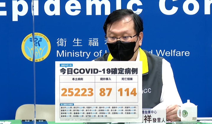 中央流行疫情指揮中心今(15)日公布國內新增25,310例COVID-19確定病例,分別為25,223例本土個案及87例境外移入;另確診個案中新增114例死亡。