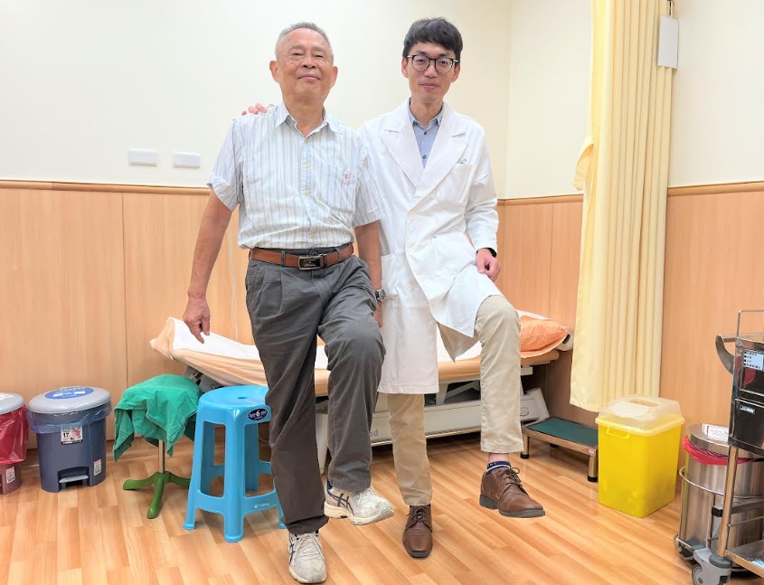 趙子鎔醫師與林先生反覆分析溝通後,進行「人工關節翻修再置換」手術,透過電腦斷層影像規劃,重新調整關節角度與力學軸線。術後第二天,林先生便能下床行走,一個月後腫脹消退,不再反覆積水,已經能獨自行動,甚至可以搭公車回診。他開心表示:「不再腫、不再痛,走路終於又有力量,非常感謝趙醫師。」