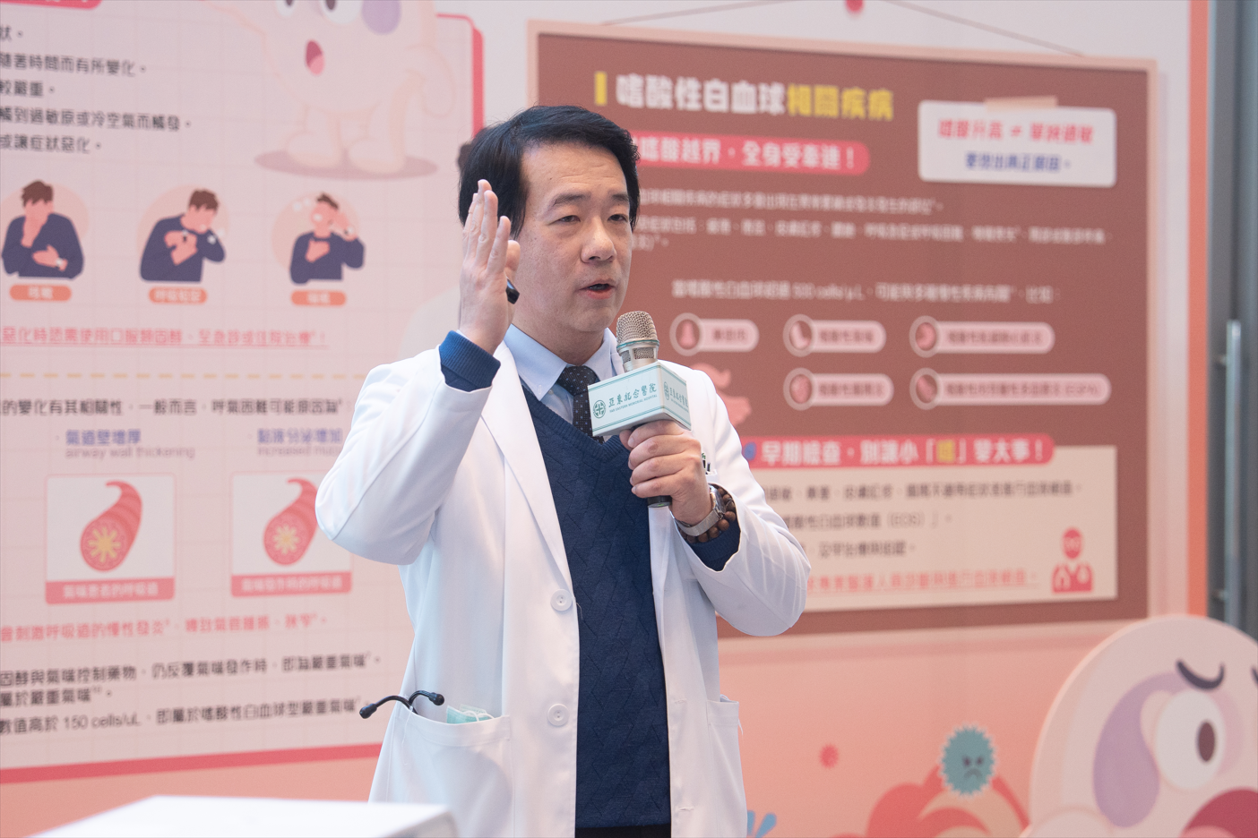 圖:胸腔內科主任鄭世隆醫師指出,嗜酸性白血球過高恐導致慢性發炎,與氣喘及過敏等疾病相關,若數值持續升高應進一步檢查/亞東醫院提供